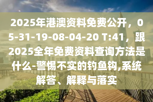 2025年港澳資料免費公開,05-31-19-08-04-20 T:41,跟2025全年免費資料查詢方法是什么-警惕不實的釣魚鉤,系統(tǒng)解答、解釋與落實