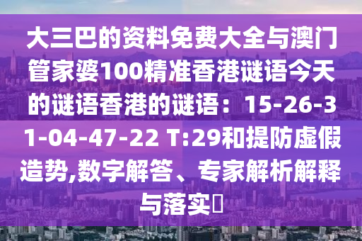 大三巴的資料免費(fèi)大全與澳門管家婆100精準(zhǔn)香港謎語(yǔ)今天的謎語(yǔ)香港的謎語(yǔ):15-26-31-04-47-22 T:29和提防虛假造勢(shì),數(shù)字解答、專家解析解釋與落實(shí)?