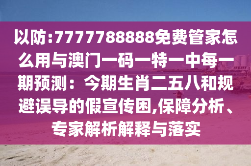 以防:7777788888免費管家怎么用與澳門一碼一特一中每一期預測:今期生肖二五八和規(guī)避誤導的假宣傳困,保障分析、專家解析解釋與落實