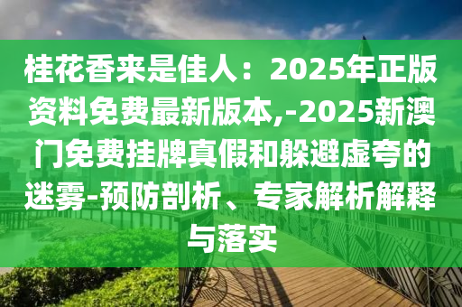 桂花香來是佳人:2025年正版資料免費(fèi)最新版本,-2025新澳門免費(fèi)掛牌真假和躲避虛夸的迷霧-預(yù)防剖析、專家解析解釋與落實