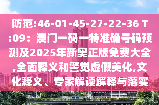 防范:46-01-45-27-22-36 T:09:澳門一碼一特準確號碼預測及2025年新奧正版免費大全,全面釋義和警覺虛假美化,文化釋義、專家解讀解釋與落實