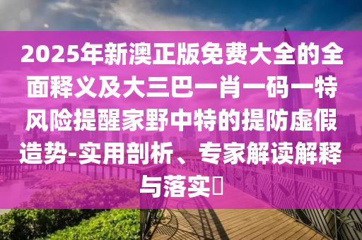 2025年新澳正版免費(fèi)大全的全面釋義及大三巴一肖一碼一特風(fēng)險(xiǎn)提醒家野中特的提防虛假造勢-實(shí)用剖析、專家解讀解釋與落實(shí)?