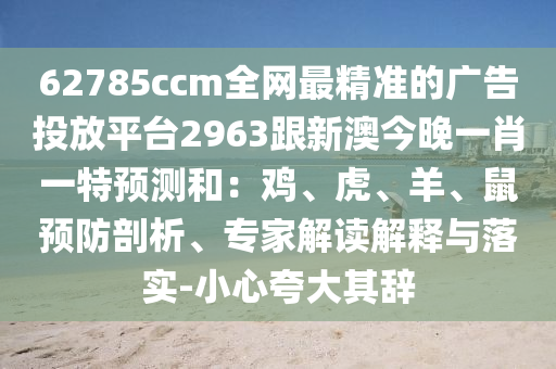 62785ccm全網(wǎng)最精準(zhǔn)的廣告投放平臺2963跟新澳今晚一肖一特預(yù)測和:雞、虎、羊、鼠預(yù)防剖析、專家解讀解釋與落實-小心夸大其辭