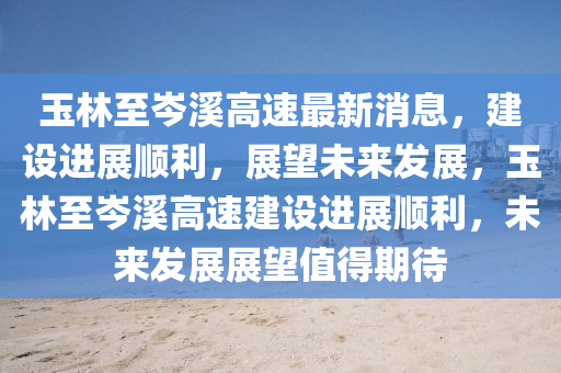 玉林至岑溪高速最新消息,建設進展順利,展望未來發(fā)展,玉林至岑溪高速建設進展順利,未來發(fā)展展望值得期待