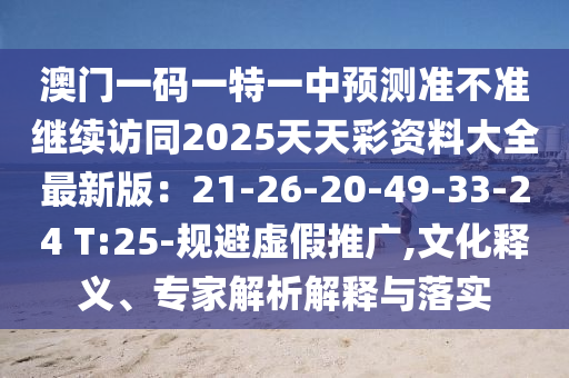 澳門一碼一特一中預(yù)測準不準繼續(xù)訪同2025天天彩資料大全最新版:21-26-20-49-33-24 T:25的文化釋義、專家解析解釋與落實