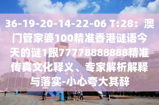 36-19-20-14-22-06 T:28:澳門管家婆100精準(zhǔn)香港謎語(yǔ)今天的謎1跟77778888888精準(zhǔn)傳真:文化釋義、專家解析解釋與落實(shí)