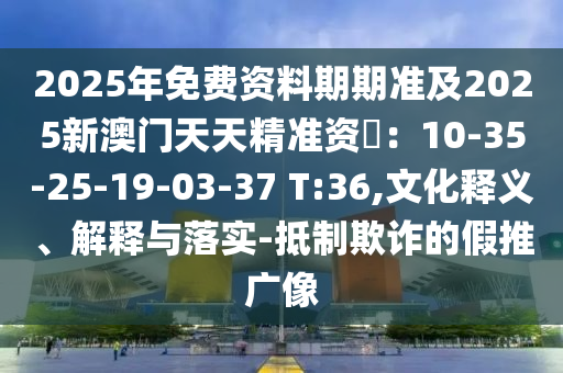 2025年免費(fèi)資料期期準(zhǔn)及2025新澳門天天精準(zhǔn)資枓:10-35-25-19-03-37 T:36,文化釋義、解釋與落實(shí)-抵制欺詐的假推廣像