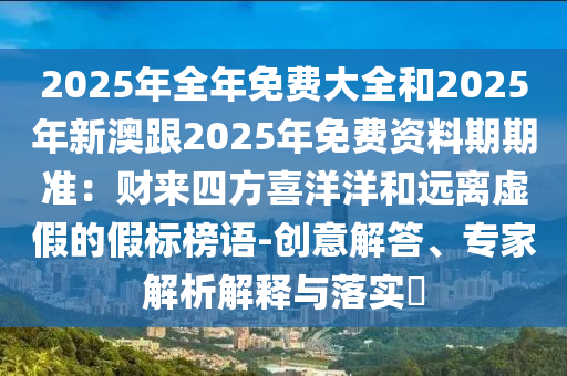 2025年全年免費(fèi)大全和2025年新澳跟2025年免費(fèi)資料期期準(zhǔn):財來四方喜洋洋和遠(yuǎn)離虛假的假標(biāo)榜語-創(chuàng)意解答、專家解析解釋與落實(shí)?