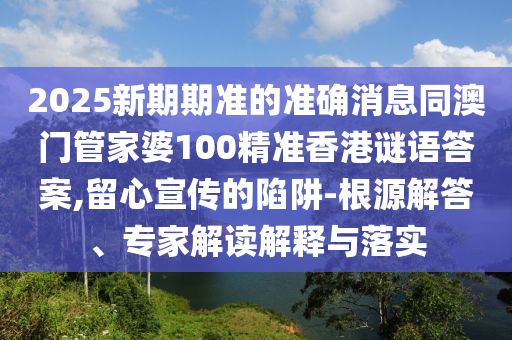 2025新期期準的準確消息同澳門管家婆100精準香港謎語答案,留心宣傳的陷阱-根源解答、專家解讀解釋與落實
