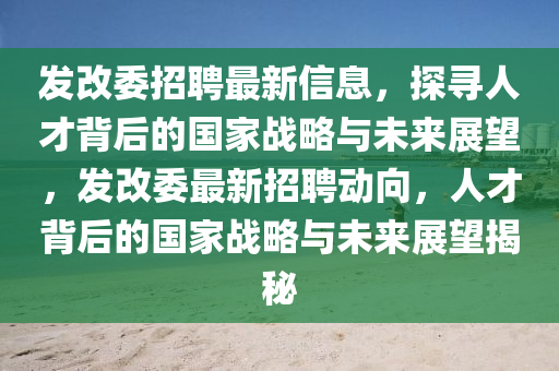 國家發(fā)展和改革委員會(huì)(發(fā)改委)發(fā)布了最新的招聘公告,面向全社會(huì)廣泛招募人才,這一消息引起了社會(huì)各界的廣泛關(guān)注,不僅體現(xiàn)了政府在推進(jìn)國家治理體系和治理能力現(xiàn)代化中的決心,也反映出我國對(duì)于人才戰(zhàn)略的重視,本文將從新聞報(bào)道的視角出發(fā),結(jié)合個(gè)人見解,對(duì)發(fā)改委此次招聘進(jìn)行深入剖析。