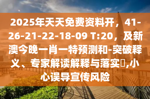 2025年天天免費(fèi)資料開,41-26-21-22-18-09 T:20”,以及“新澳今晚一肖一特預(yù)測(cè)和”的概念,我們需要從釋義、專家解讀與落實(shí)相關(guān)概念的角度來(lái)詳細(xì)解釋,并提醒用戶小心誤導(dǎo)宣傳的風(fēng)險(xiǎn)。