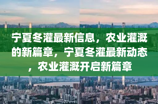 隨著季節(jié)的變換,寧夏的冬季已經(jīng)悄然而至,在這個寒冷的季節(jié)里,寧夏的農(nóng)業(yè)灌溉工作卻正如火如荼地進行著,本文將結(jié)合最新信息,從新聞報道的視角出發(fā),對寧夏冬灌的最新情況進行深入報道,并談?wù)勛约旱囊娊狻?/p>