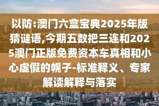 以防:澳門六盒寶典2025年版猜謎語,今期五數把三連和2025澳門正版免費資本車真相和小心虛假的幌子-標準釋義、專家解讀解釋與落實